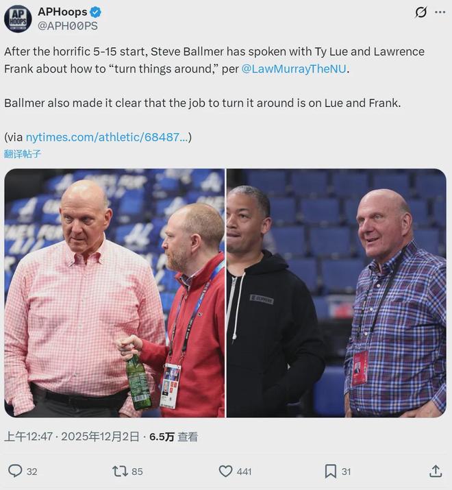 鮑爾默明確表示,弗蘭克和泰倫盧必須承擔各自的責任,快船能否扭轉頹勢就看他倆了。剛剛過去的11月份,快船2勝13負。快船上一次單月輸掉13場,還要追溯到2010年3月。ESPN最新報道,NBA各隊感到恐慌,因為雷霆擁有快船的首輪簽。