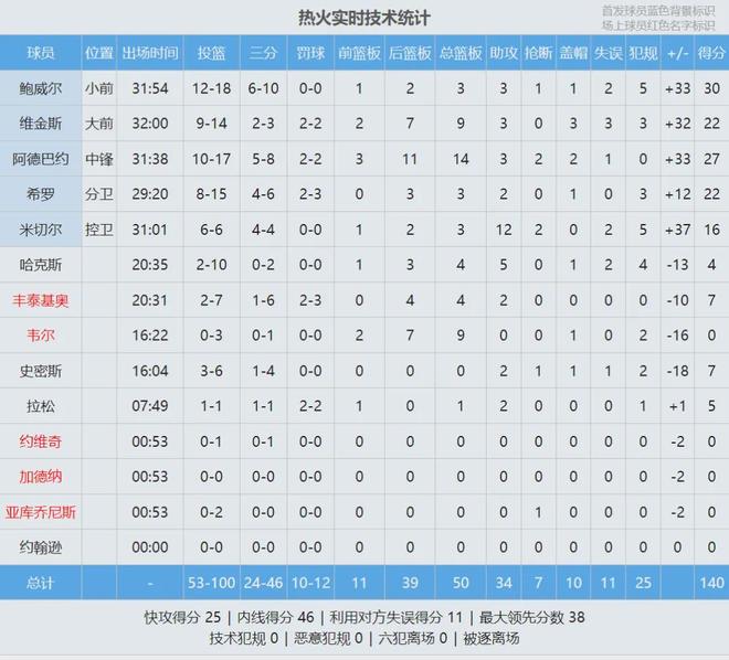 鮑威爾18投12中,0罰球砍下30分3籃板3助攻。阿德巴約27分14板3助2斷2帽、維金斯22分9板3助3帽、希羅22分3板2助。最后看看數據: